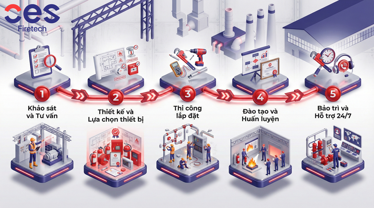 Đầu tư vào công nghệ PCCC là đầu tư cho sự bền vững của doanh nghiệp. Với dịch vụ chuyển giao công nghệ PCCC chuyên nghiệp từ CES, bạn không chỉ sở hữu một hệ thống hiện đại mà còn có một quy trình vận hành an toàn, hiệu quả và đúng luật.