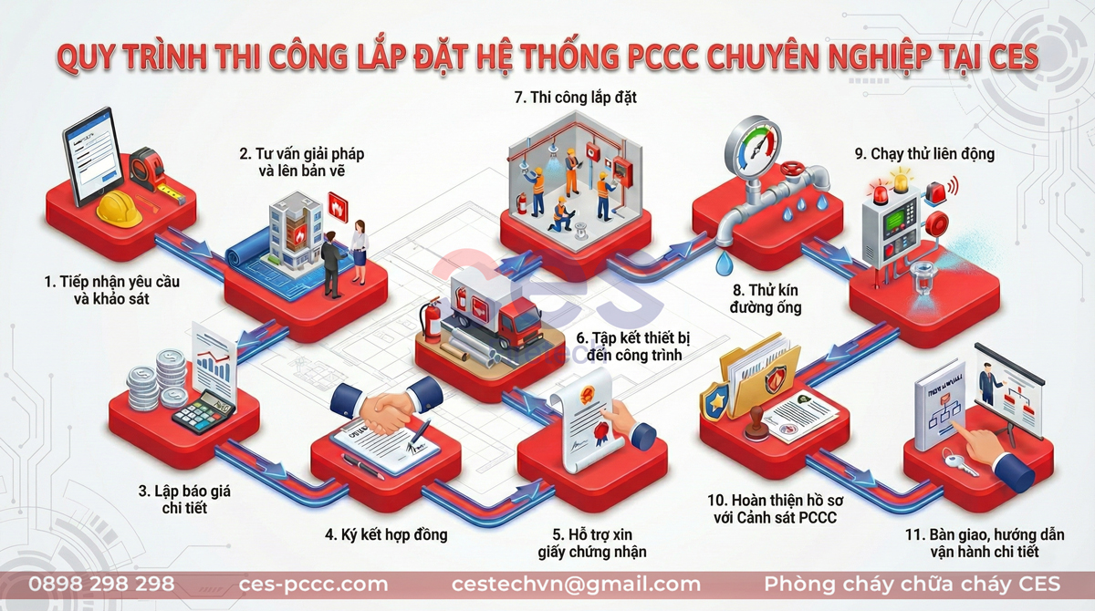 Quy trình thi công PCCC chuyên nghiệp 11 bước của CES